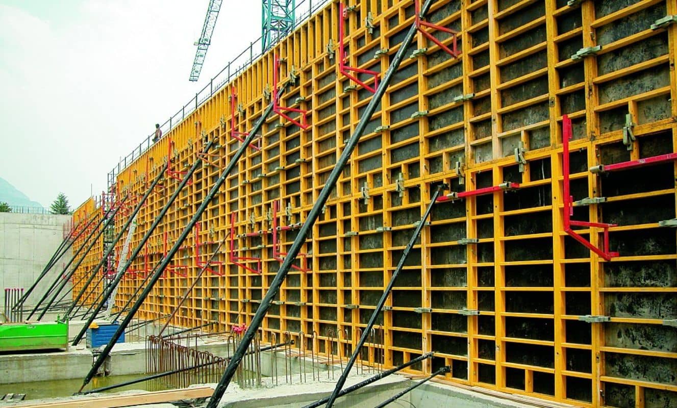 The yellow steel structure with 12 cm (4" 23/32) section enables to realize walls for residential and industrial buildings. Moulds, reciprocally assembled vertically or horizontally, suit to the different building requirements and ensure good performance at the same time. With the same section, the steel module moulds can be combined with the aluminum module ones by joining accessories such as the aligning clamp or pin and wedge.